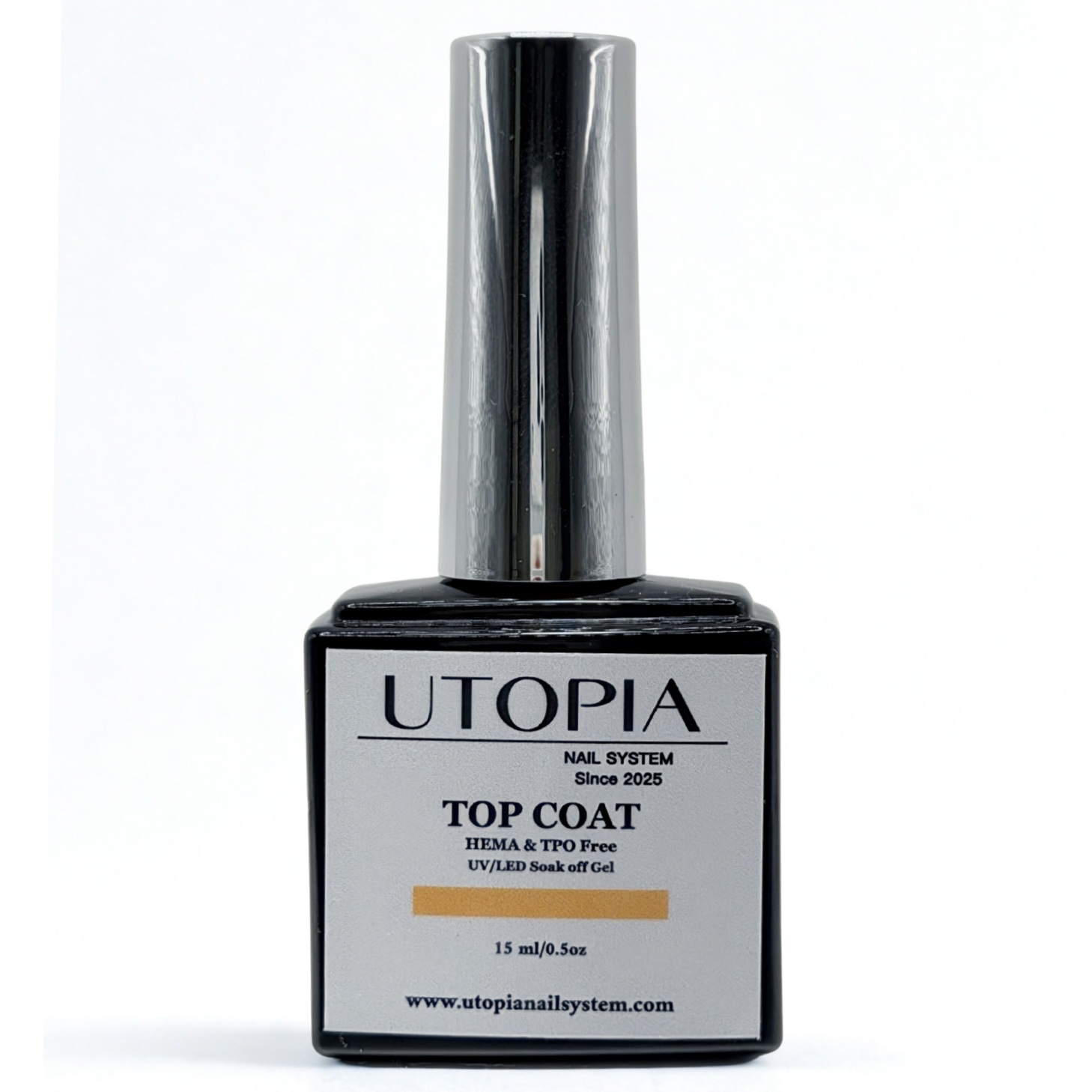 Top coat libre de HEMA y TPO, ideal para uñas sensibles o propensas a alergias. Brillo duradero, sin capa pegajosa y sin amarilleo. Curado UV/LED 60s.
