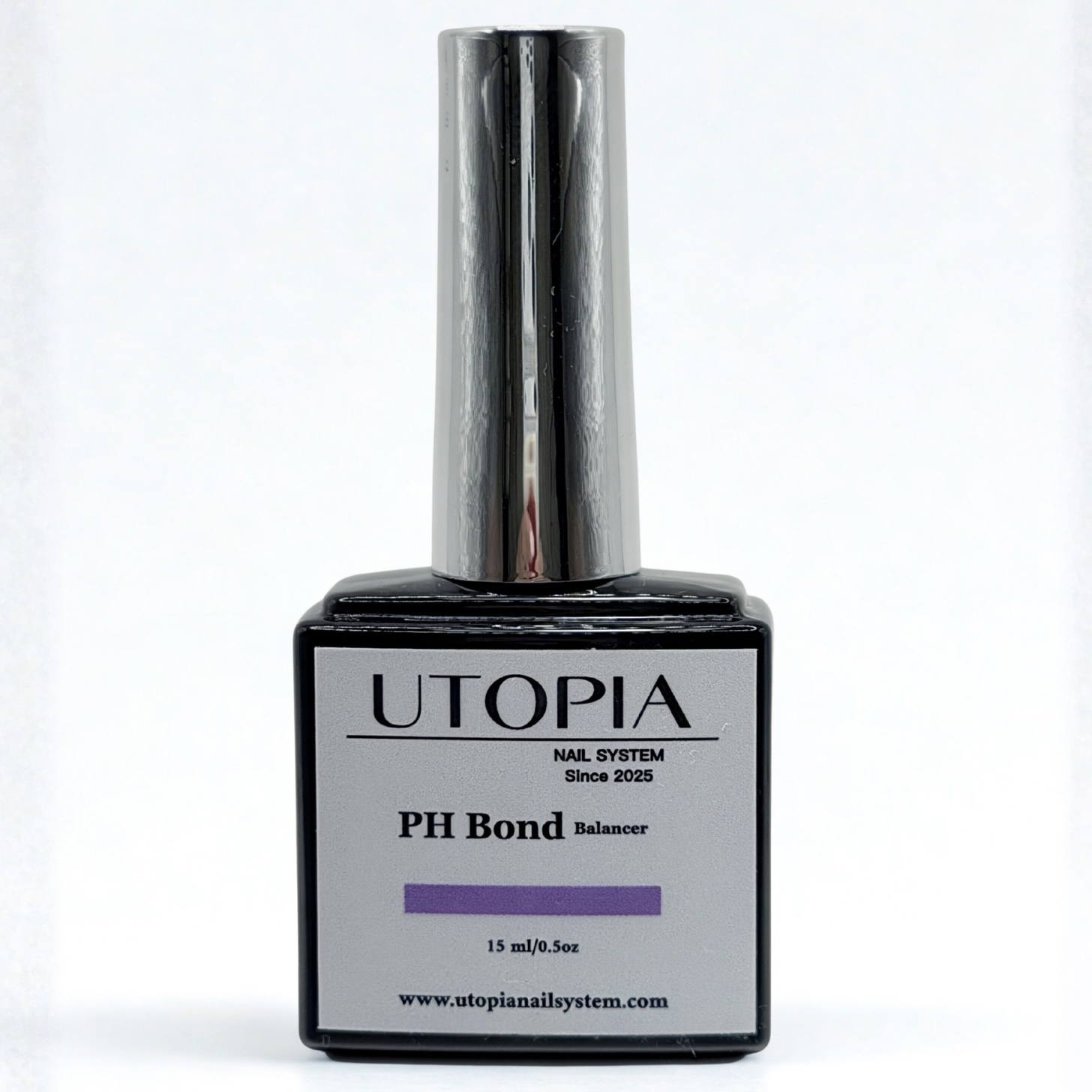 El PH Bond de Utopia Nail System es un deshidratador profesional diseñado para eliminar los aceites naturales y regular el pH de la uña, preparando la superficie antes del primer o la base.